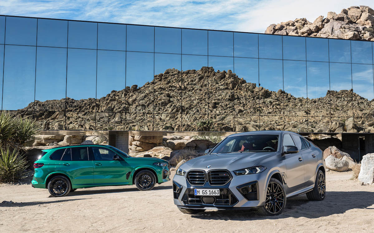 Nonostante la mole ed il peso, piuttosto imponenti, queste due belve accelerano da 0 a 100 km/h in 3,9 secondi. Secondo BMW (ma io ci credo poco) migliorano anche consumi e le emissioni. Rivisti anche il cambio M Steptronic a otto rapporti con Drivelogic, che offre tre settaggi, sia in automatico, che in manuale ed il sistema di trazione integrale M xDrive, comprensivo di differenziale attivo M sul posteriore. Sul menu del guidatore, ora, oltre alla modalità 4WD, c’è anche un particolare settaggio, che sposta quasi tutta la trazione sul posteriore, per consentire qualche “derapata” controllata. Carrozzeria ed i supporti del telaio, sono stati irrigiditi, come anche le sospensioni e i sistemi di smorzamento, sil tutto, probabilmente, a discapito del comfort sulle lunghe distanze. Di serie, ci sono le sospensioni adattive M a controllo elettronico, rielaborate con stabilizzazione attiva del rollio. Non poteva mancare una ritoccatina alla scatola dello sterzo, per una “dinamica di guida più precisa”. Oltre ad un adeguamento dei software, completa il tutto un impianto frenante M Compound, con due impostazioni di frenata. Qualche piccolo ritocchino anche sul look: nuovi fari a LED a matrice con controllo adattivo, integrati su gruppi ottici più stretti di 35 millimetri; una griglia a doppio rene totalmente nera; un diffusore posteriore, che si estende fino alla grembialatura; elementi di luce a forma di x in fibra ottica, per i fari posteriori e le luci dei freni. Internamente, troviamo un “Curved Display” formato da un elemento informativo da 12,3 pollici e da un display di controllo con una diagonale di 14,9 pollici, integrati in un’unica superficie di vetro. Nuovo il volante in pelle, con palette in carbonio. Per quanto riguarda la dotazione, in tema di elettronica per la sicurezza, da segnalare l’avviso di collisione anteriore aggiornato, per ridurre ulteriormente il rischio di collisione con ciclisti, pedoni e traffico in arrivo, quando si svolta. La BMW Digital Key Plus è optional e consente di bloccare e sbloccare l’auto, utilizzando lo smartphone.