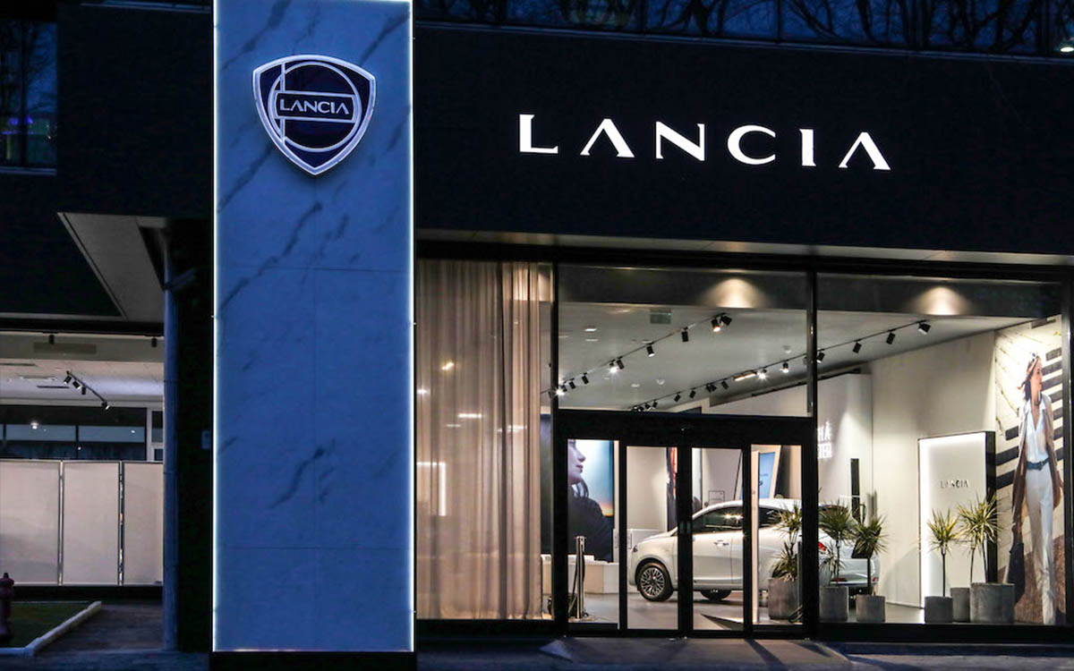 “Il nuovo concept store Lancia evoca tutti i valori del marchio con un focus particolare sull'eleganza italiana. Caratterizzati da un’architettura moderna, la facciata esterna è di colore scuro e mette in risalto le ampie vetrate luminose e la nuova scritta Lancia posta in alto in posizione ben visibile all’ingresso. Il nuovo font, lanciato durante il Lancia Design Dayprende ispirazione da una delle eccellenze italiane più legate alla storia del marchio, la Moda, “firmando” il futuro del brand per renderlo desiderabile, duraturo e sempre contemporaneo.